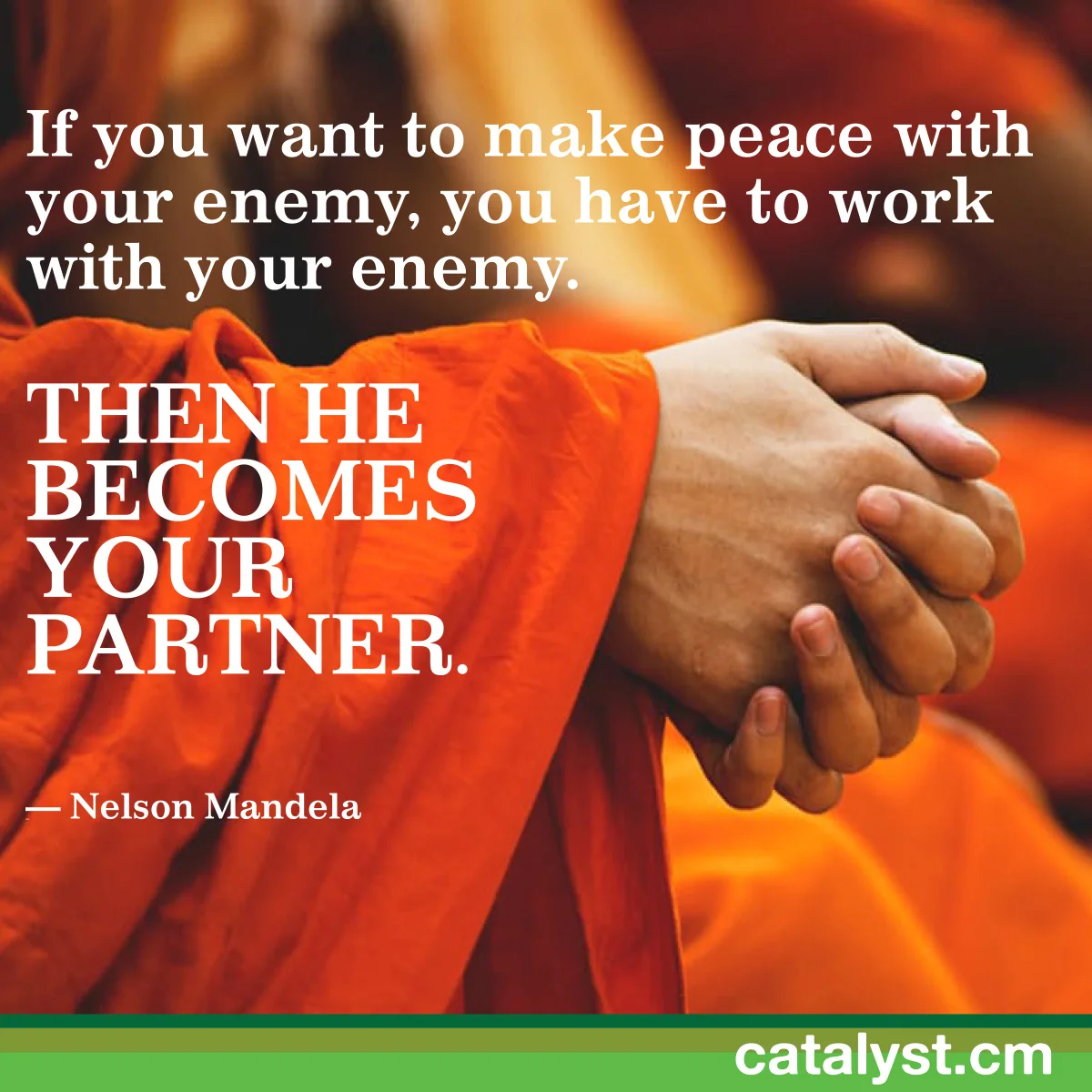 If you want to make peace with your enemy, you have to work with your enemy. Then he becomes your partner. March 11, 2017