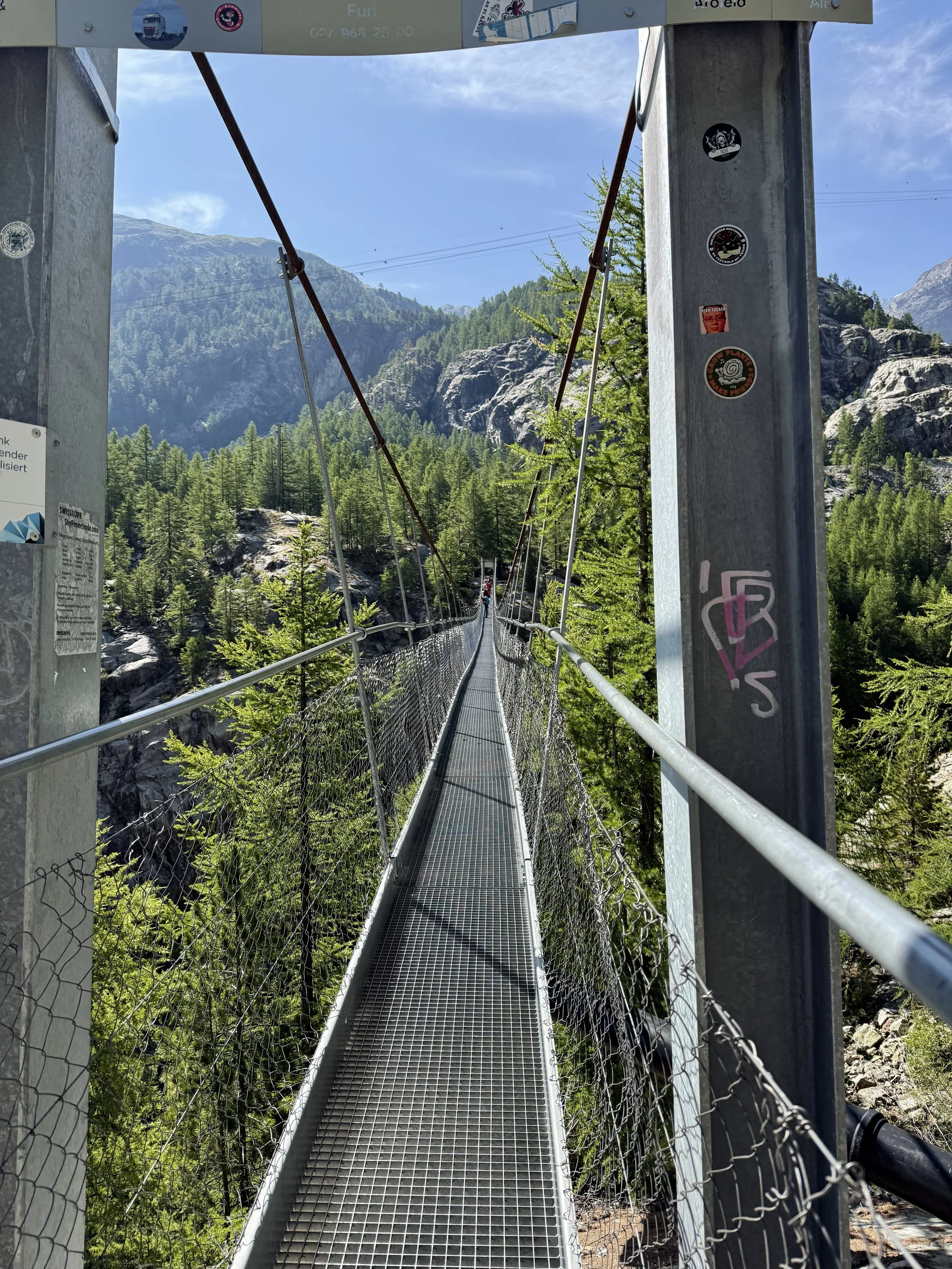 Furi Suspension Bridge - This pedestrian bridge spans over a 300-foot gorge, offering an intense view of the waters down below. To access it, one must take a steep yet picture-perfect hike out of the valley that provides stunning sights of the Matterhorn and surrounding mountains