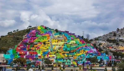 In the center of a small neighborhood located in the city of Pachuca, Hidalgo, the largest graffiti mural in all of Mexico, painted onto a canvas of 200 homes, was inaugurated this July. But the “macro mural” has done much more than simply give some color to the hillside district of Las Palmitas, a predominantly rural neighborhood with a certain degree of poverty and crime.