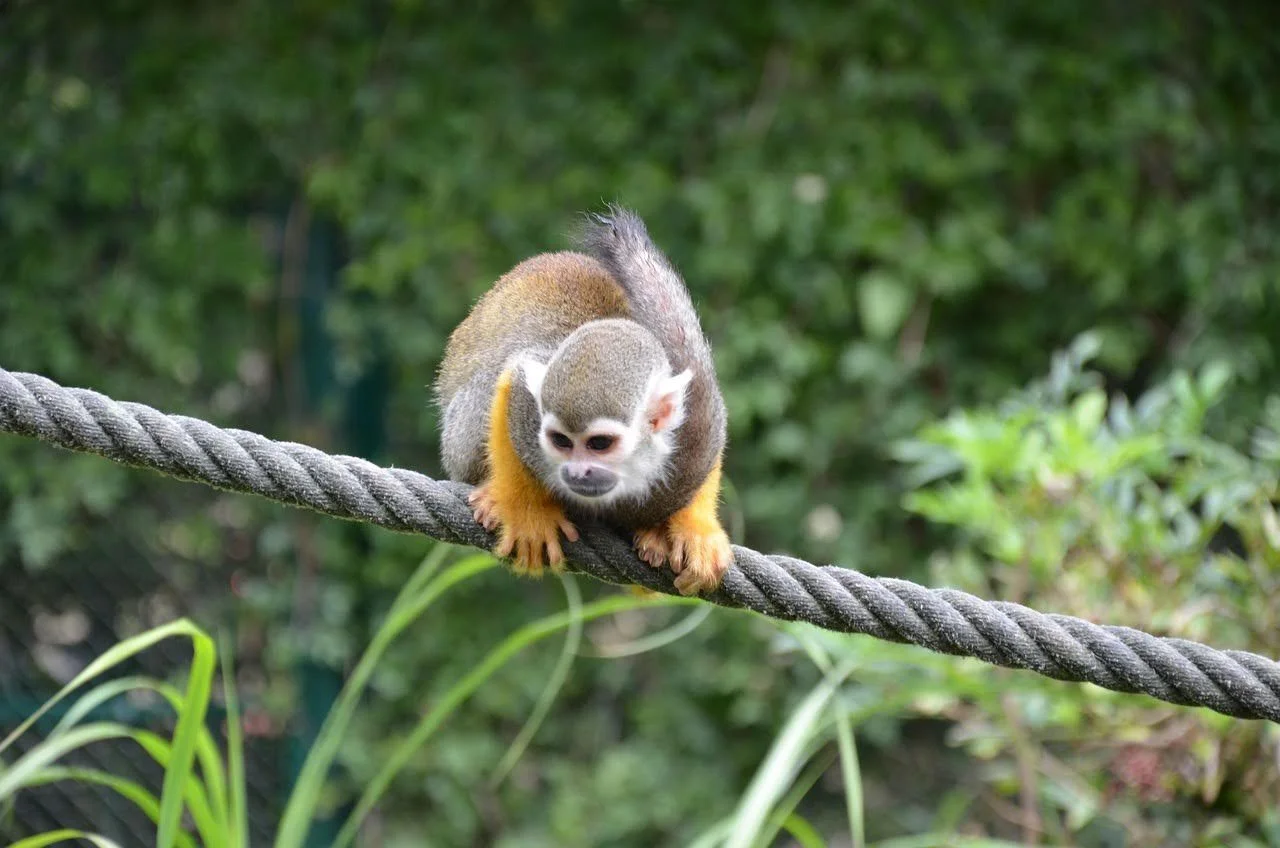 Squirrel monkey on a wildlife bridge. Flobrc. Pixabay.
