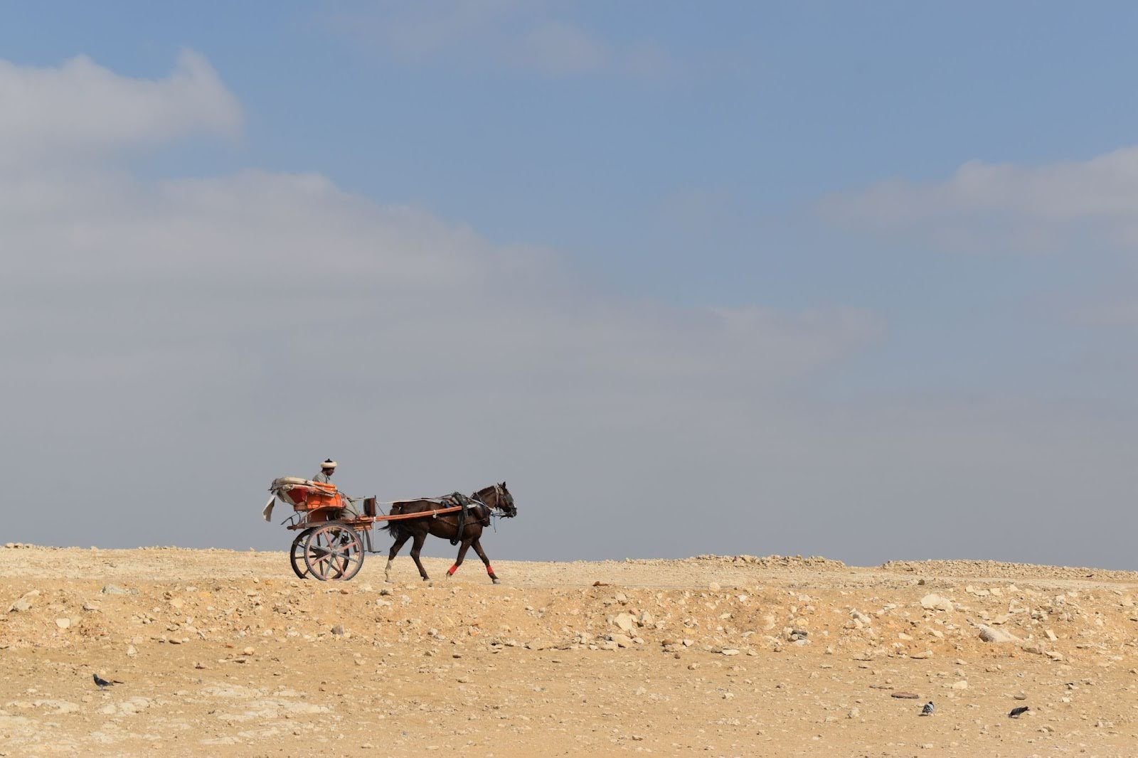 Horse cart and owner near the Great Pyramid of Giza. Nick Dauk.