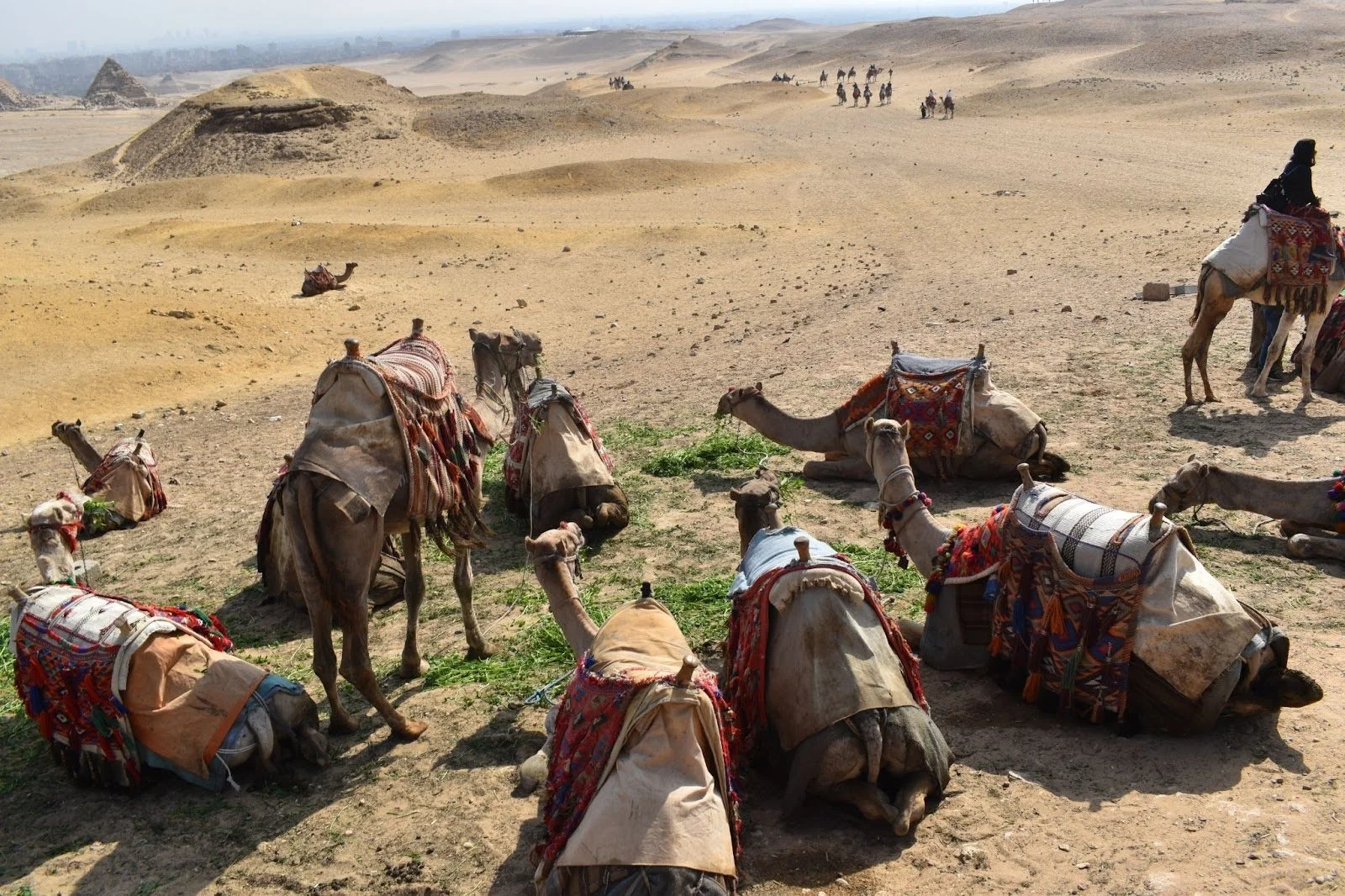 A group of camels used for tourism at the Giza Necropolis. Nick Dauk.